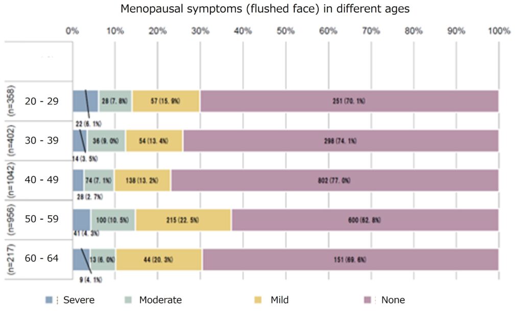 Menopausal disorders are caused by the decrease in female hormone secretion and various psychological and social stresses during the perimenopausal period and involves various symptoms such as hot flashes (e.g., upper body flushing, glowing, sweating), mental symptoms (depression, anxiety, and insomnia), and physical symptoms (fatigue and joint pain), which interfere with daily life. Hormone replacement therapy, which supplements female hormone in small doses, is a typical drug therapy, but its use in Japan is limited to about 2% of the patients due to concerns about adverse events such as breast cancer.